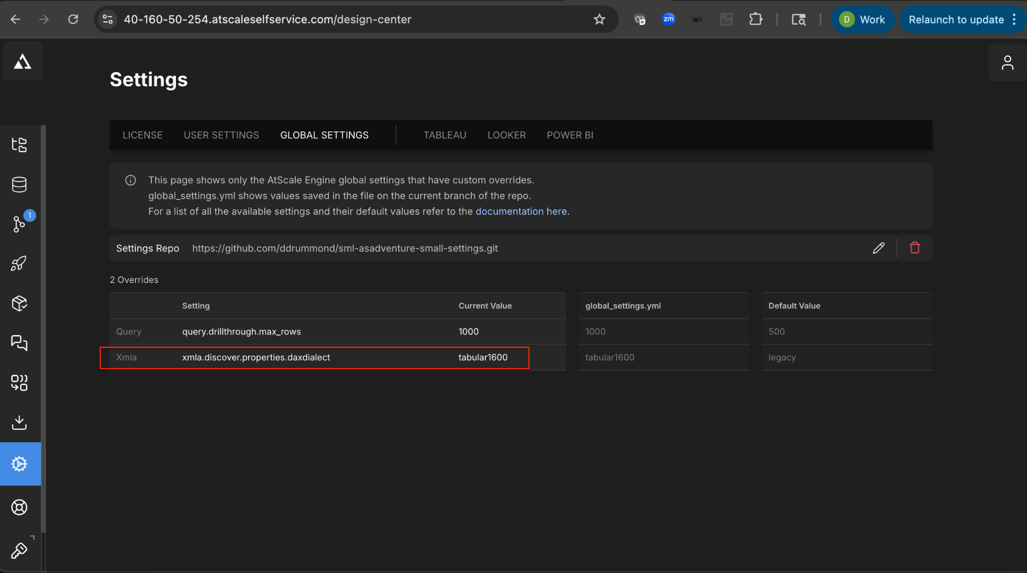 - AtScale c2025.9.0 supports Power BI Field Parameters by enabling the "tabular1600" dax dialect setting and AtScale Model-specific URLs.