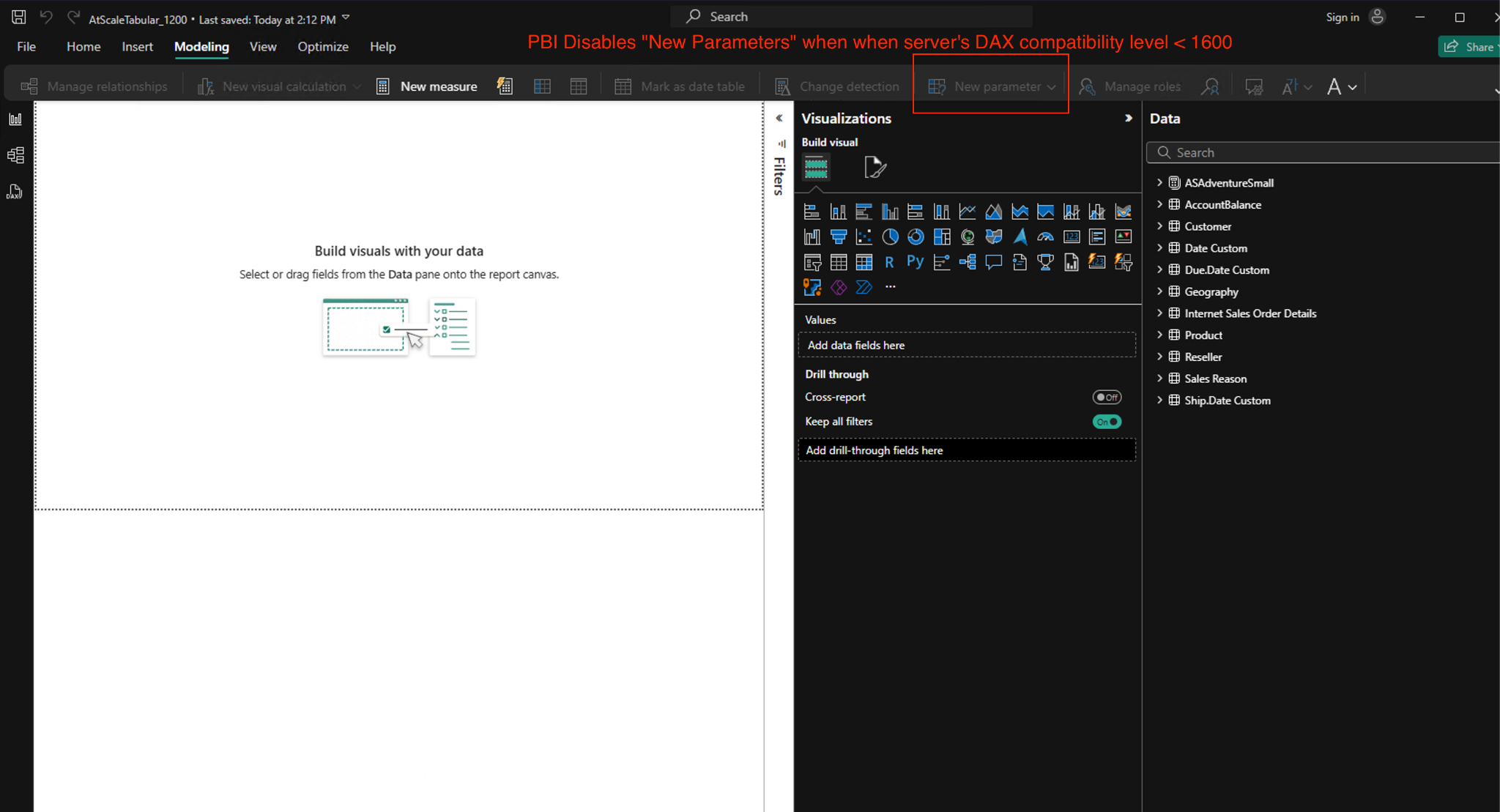 Before AtScale c2025.9.0: "New Parameter" option is disabled