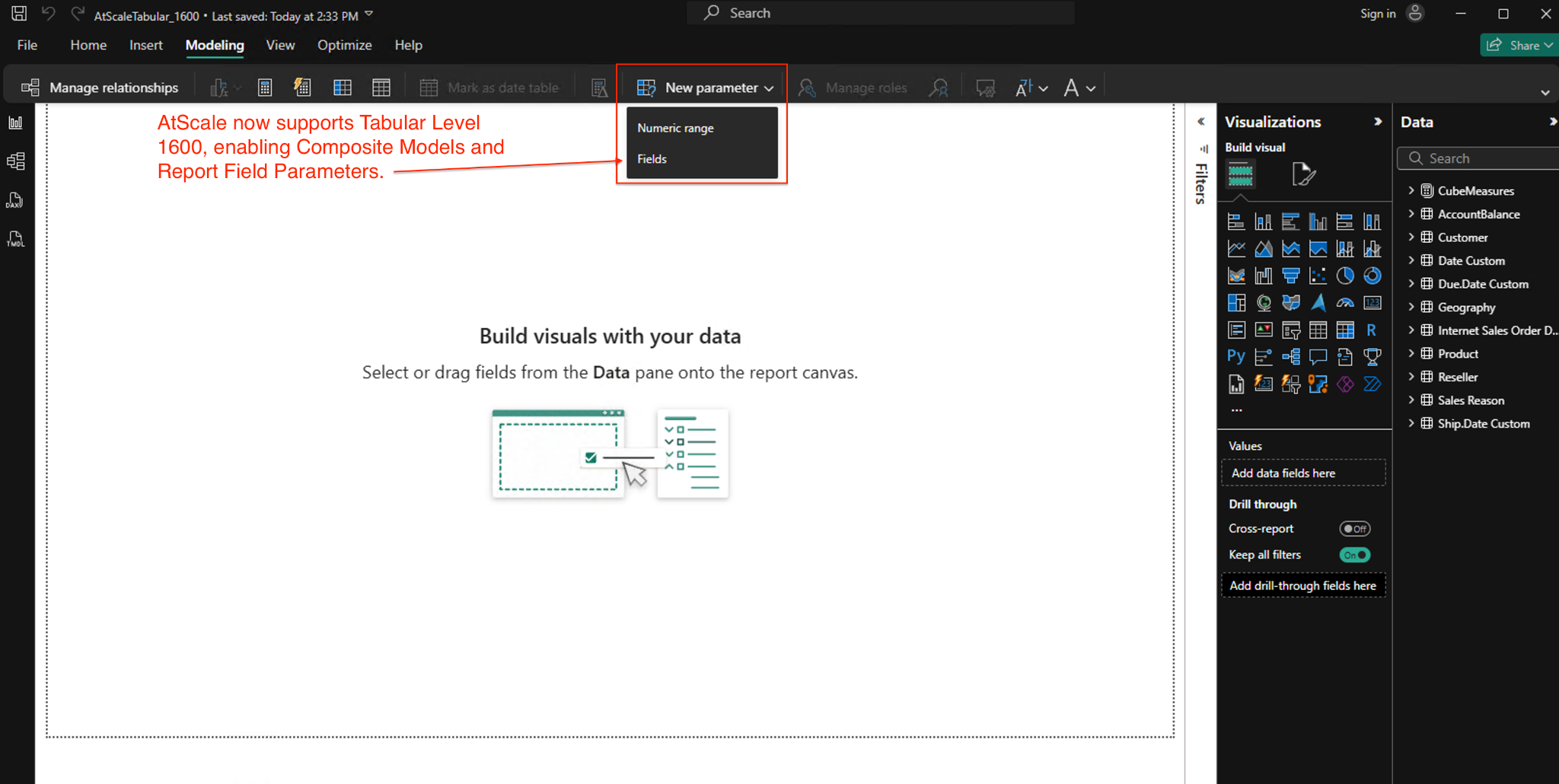 - AtScale c2025.9.0 supports PBI Field Parameters with the "tabular1600" DAX dialect setting and Direct Model Connections.