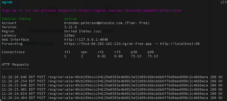 And from there substitute localhost for the new URL for my connection settings