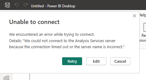 I deployed a model in Atscale Developer Edition and copied the MDX+token from connection details. When I pasted it to the server name in Power BI, this is the error. The MDX+token was in the format http://localhost/engine/xmla/******.